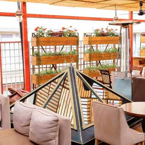 В теплое время года работает летняя терраса на 45 мест. Она оборудована навесом и мягкими диванами. Здесь можно насладиться свежим воздухом, заказать коктейли и кальян, провести время в непринужденной атмосфере.