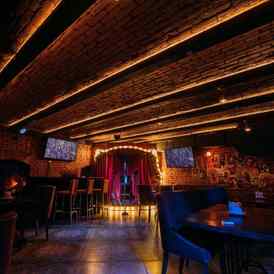 Одной из особенностей гастробара является караоке-рум, расположенный в нижнем зале. Пространство оформлено в уютном стиле с приглушенным светом, деревянными элементами декора и сценой с бархатными кулисами. Современное звуковое оборудование, микрофоны и профессиональная акустика дают возможность гостям почувствовать себя артистами. Караоке-зал рассчитан на 30-35 человек, что делает его удобным вариантом для небольших компаний.